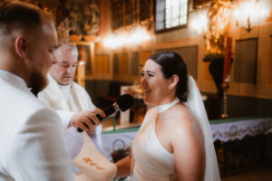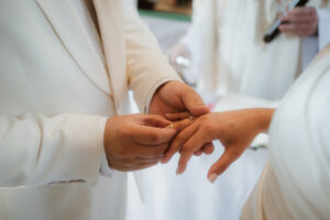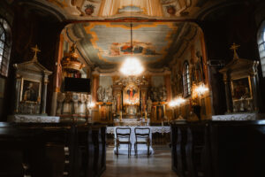 Współczesne reportaże ślubne coraz częściej stawiają na kameralność, bez wątpienia jest to trend, który jest nam szczególnie bliski. Przede wszystkim wybór, jakim jest mikrowesele w stylu old money, to świadoma decyzja o byciu blisko. W konsekwencji w takich historiach fotografujemy bez pośpiechu i bez zbędnej presji. Z przyjemnością zanurzamy się w spokojnym rytmie slow wedding, podobnie jak w przypadku naszej innej historii z Agro-pustelnika